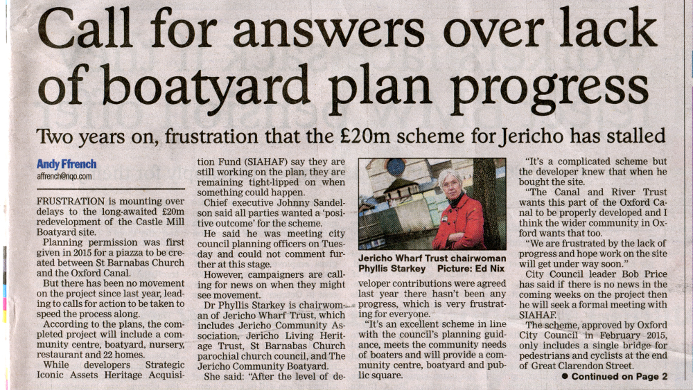 The Jericho Wharf Trust is responsible for all aspects of the campaign to develop the Jericho Wharf canalside site in Oxford on behalf of the community