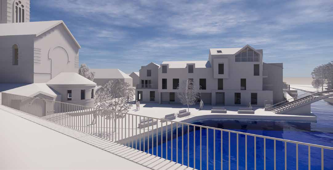 The layout creates a sense of place generating active frontages and links to a focal area celebrating not only the church but the widening of the canal and connections to the tow path. The balance of activity befits the nature of the area being semi-urban and peripheral to the density of the city. Hence the piazza is to be designed without being overly formal yet provides a pleasant sense of place with secure overlooking.