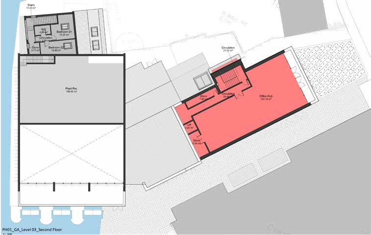 The building will be developed in two phases. The first will be constructed (by JWRC, with fitout by JWT) alongside the residential housing, canal works, bridge and formation of the public square. The second phase will be funded and built by the Jericho Wharf Trust (JWT) at a later date.